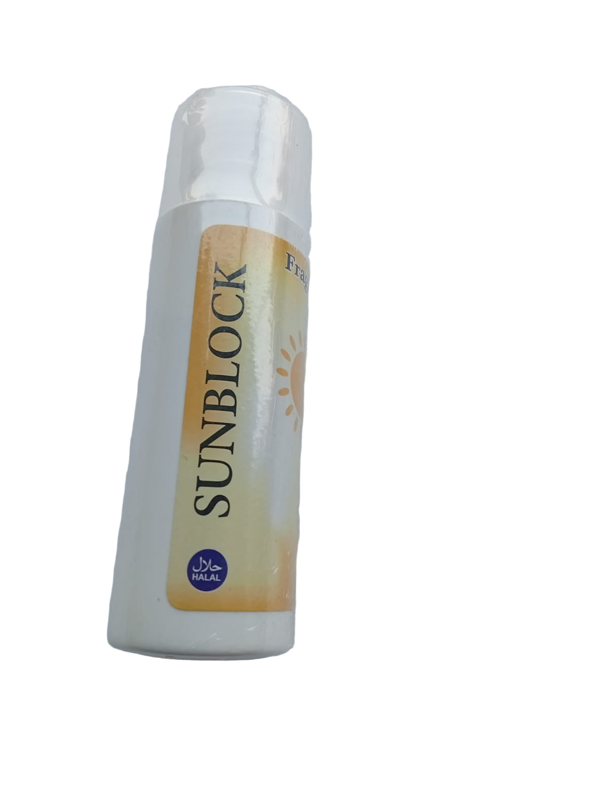 Fragrance - Free Sun Block 100ml in strong travel -friendly packaging. Gentle , non - Irritating , leak - leak proof perfect for hajj o umra, travel and daily use.